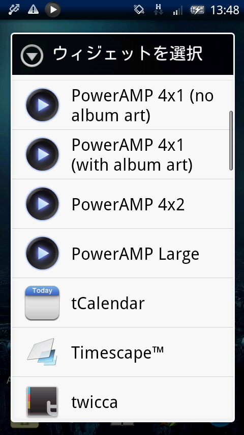右の写真の上にあるのが「PowerAMP Large」ってやつで下にあるちっこいのが「PowerAMP 4×1(no album art)」ってやつです。