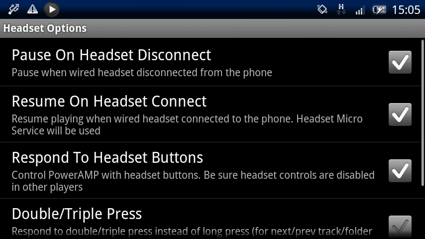 「Resume on Headset Buttons」のチェックを付けておくと、ヘッドセットが本体に挿された時に再生開始になります。