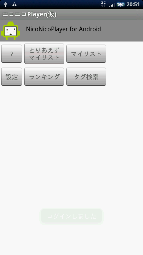 試しに無料アプリのニコニコPlayer(仮)をダウンロードして使ってみました。