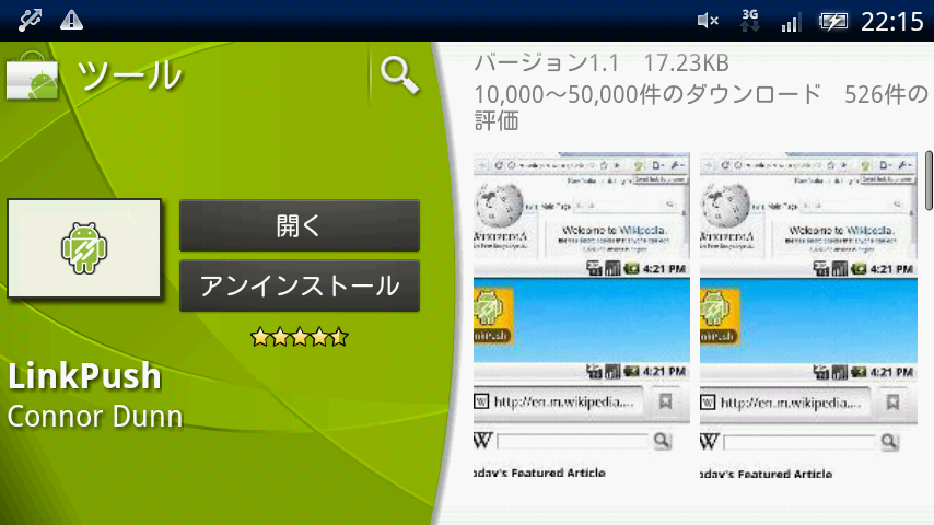 LinkPushをAndroidマーケットで検索(Android端末からのみ)