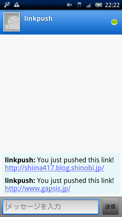 するとAndroid端末側で、そのサイトのURLがメッセージとして受信されます。