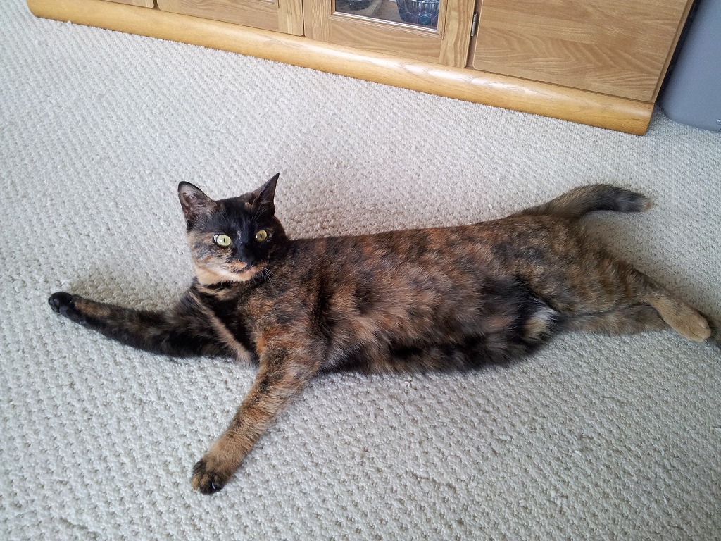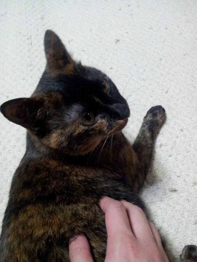 呼ぶとすぐすり寄ってきてゴロンと横になって甘えます。カワイイw