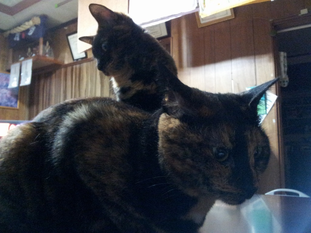 いつぞや登場した実家の猫、プリンとチョコです。